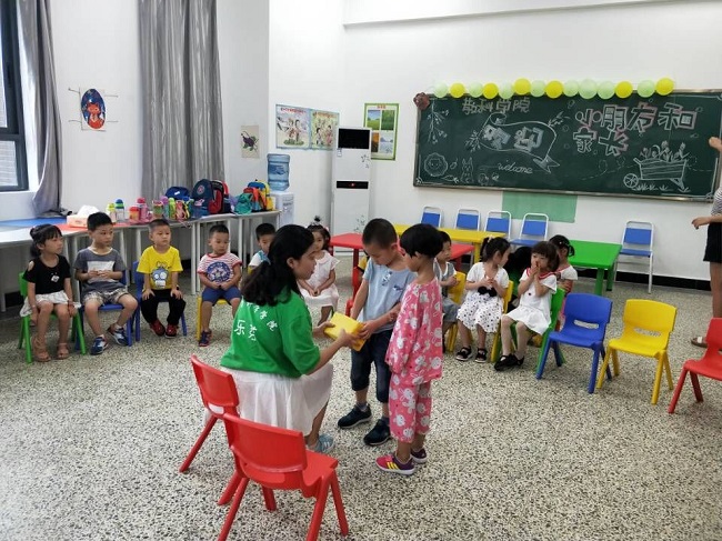 本次乐芽儿童夏令营共开设有7个班型,有158名教职工子女参加,其中有62名从7个月至36个月年龄不等的宝宝们成为了早教班活动的参与者,还有37名小朋友参加了幼教班,38名小朋友参与了幼小衔接班,更有21名小朋友参加了手工班,每个班均有专任老师担任指导教师,而志愿者们也在老师的细心指导下,经过反复设计教案和试讲试教的演练,力求每一位孩子能够在乐芽儿童夏令营活动中度过愉快而又充实的时光。