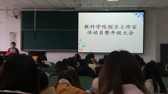 本网讯(文、图/罗祺平)教育科学学院为积极响应学校“创卫”工作要求,认真贯彻落实《乐山师范学院创建国家级卫生城市工作方案(三年工作规划)》方案,3月13日—18日通过开展全院年级大会、各班班会等宣讲活动,对学生进行劳动教育。要求每一位学生积极行动,人人参与,营造一个文明守信的生态环境;倡导在创卫中提升自我健康卫生水平;在劳动锻炼中提升自我责任心与意志力,争取德智体美劳全面发展。