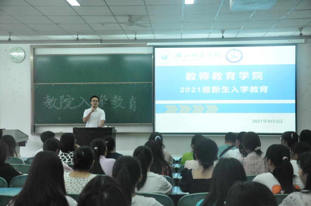 9月5日上午9点,教师教育学院在行知楼125教室开展2021级新生入学教育大会。学生科科长翟雅媛、党支部书记杨婷婷、分团委书记李过、20级辅导员朱志刚和21级全体新生参加了会议。