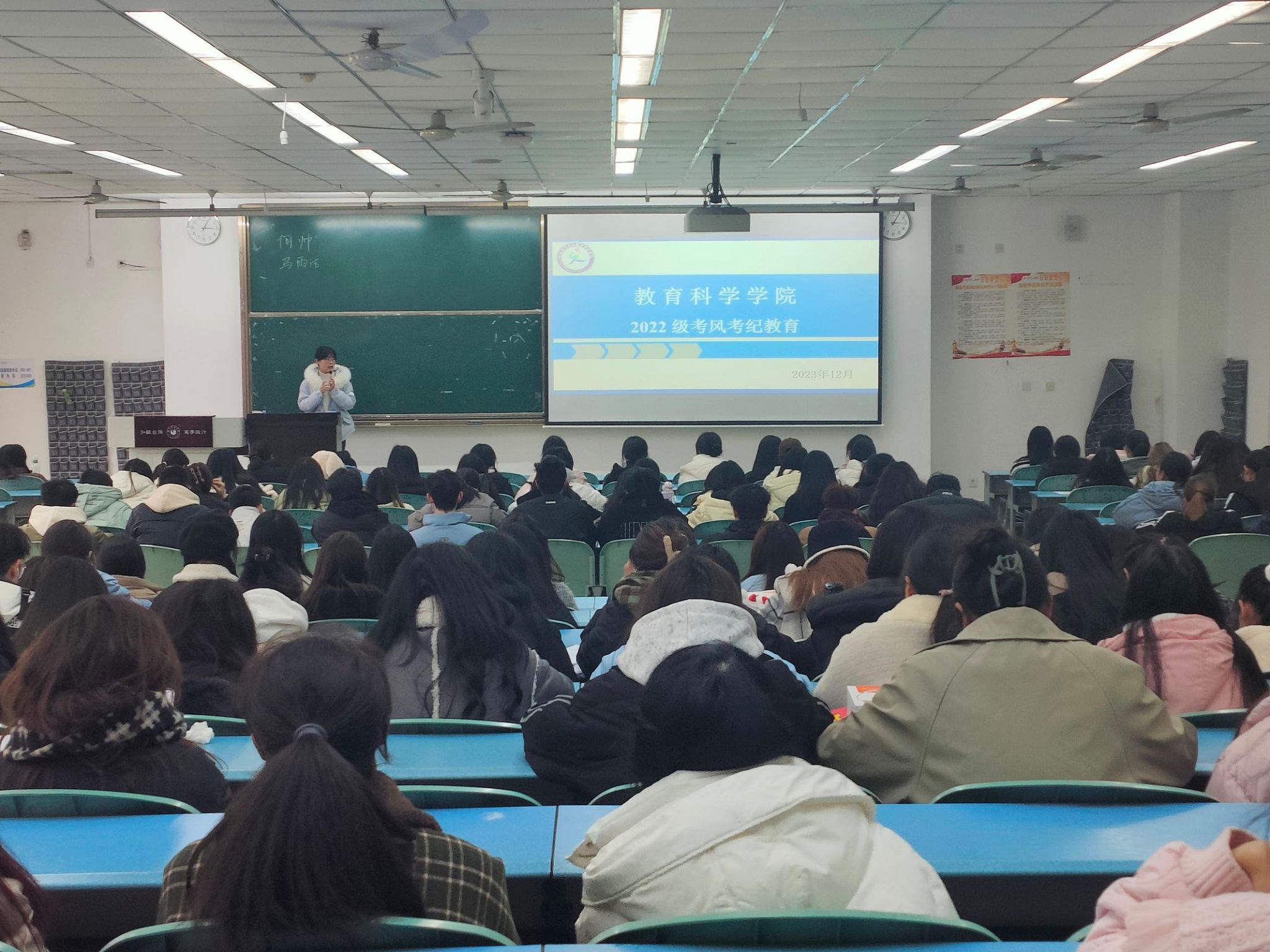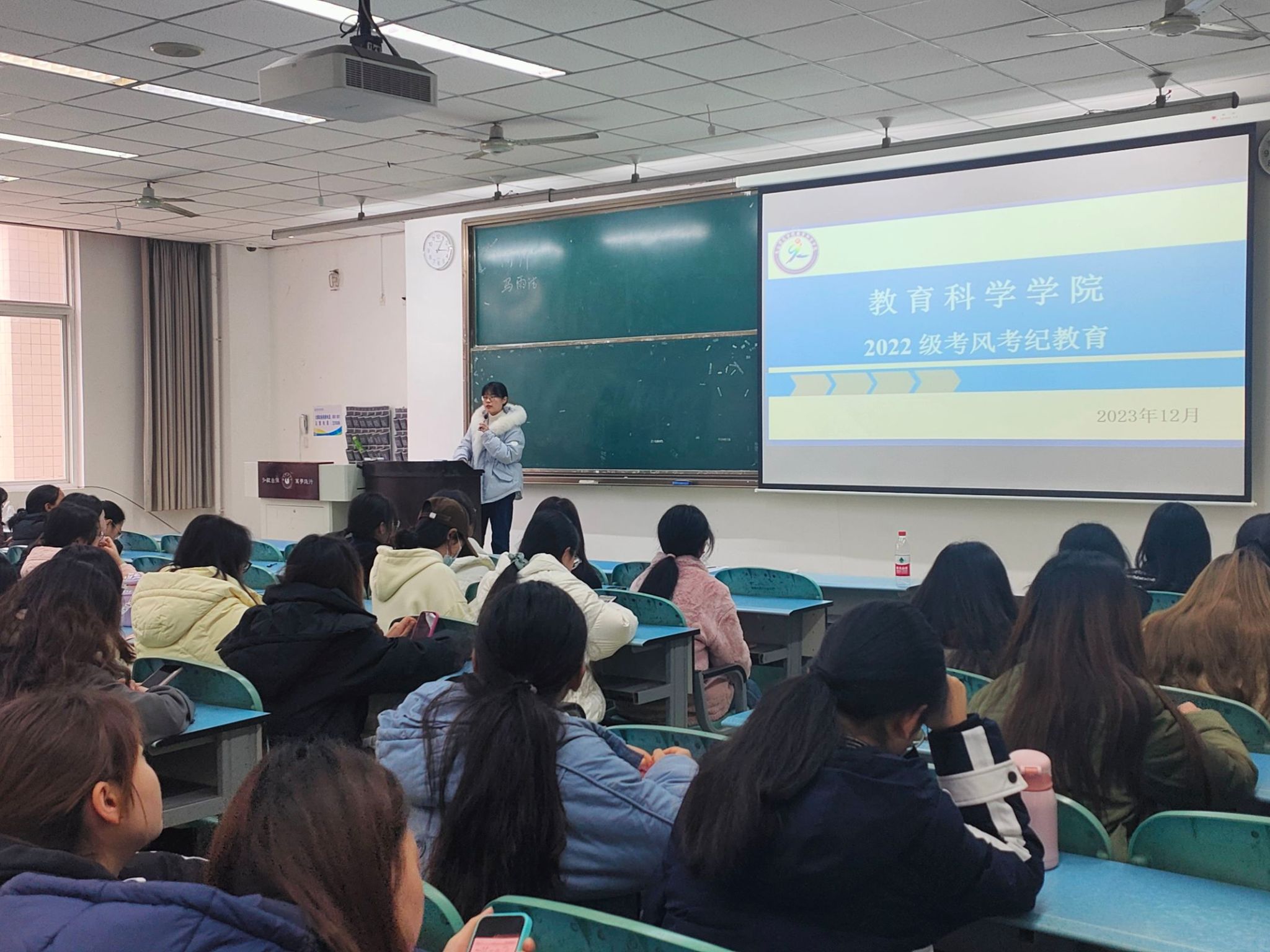 本网讯(文、图/贾琪)为切实加强考风考纪工作,积极倡导和弘扬诚实守信的良好风尚,12月28、29日,教育科学学院各年级辅导员组织学生开展了期末考试诚信教育会。