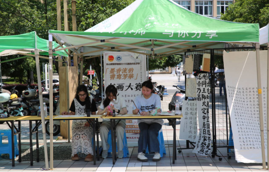 本网讯(文/ 图/欧星雨、陆滢平)6月9日,乐山师范学院第三十三届校内艺术节“墨香流韵,书写芳华”书画大赛决赛作品展在桂花广场圆满落幕。本次大赛以“厚植家国情怀,涵养进取品格”为主题,吸引了教育科学学院、美术与设计学院、数理学院等9个学院的学生踊跃参与,经初赛选拔,共有38件思想性与艺术性兼备的优秀作品入围决赛。