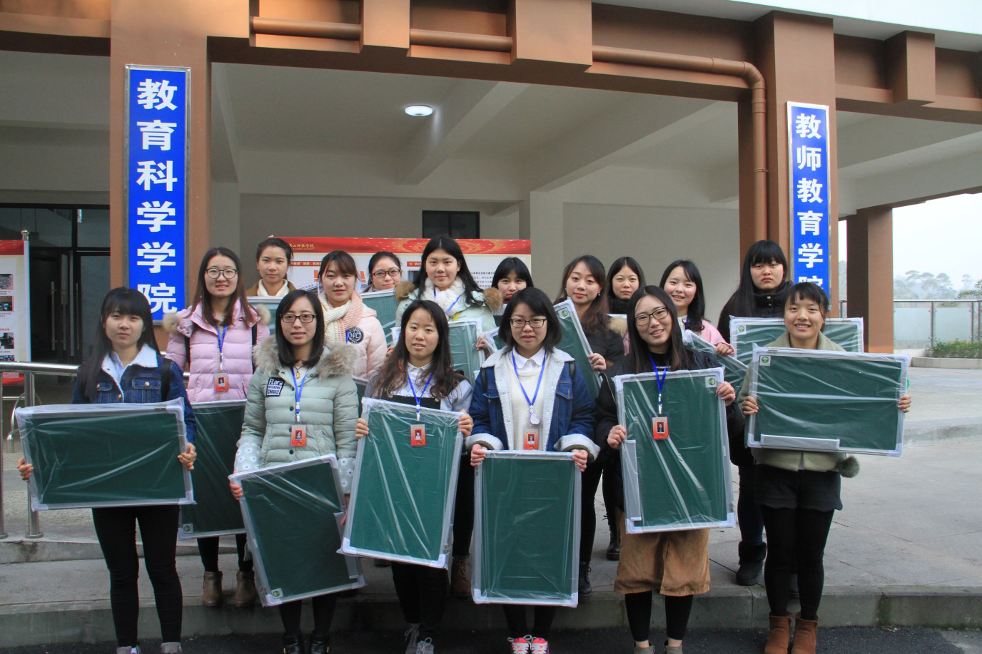 为了进一步推进师范生专业技能训练,促进学生粉笔字书写能力。1228日,教育科学学院为592名师范生(201420152016级小学教育专业、教育学专业和学前教育专业)发放了小黑板和黑板刷。