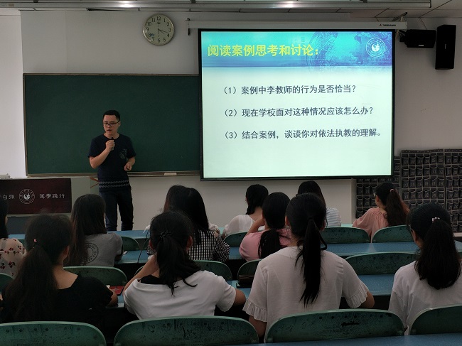 本网讯(文、图/唐红缨)2019年6月21日,教科学院2019年青年教师课堂教学竞赛在行知楼312教室(舞蹈课在实训楼B104)举行。此次比赛共有6位青年教师参加,评委全部由其他学院老师担任,学院45岁以下的青年教师参加了教学观摩。