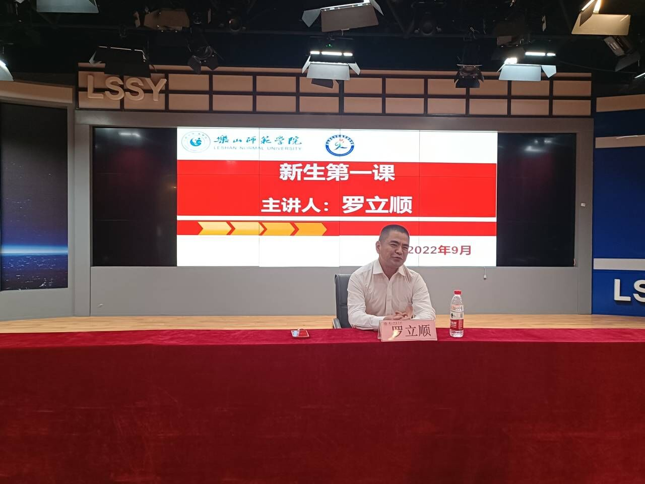 典礼结束后,党委书记罗立顺为新生讲授开学第一课。他以一个小故事引出第一课,生动的讲述了自己的求学经历,并与同学们分享其他老师的故事,他认为大学学习的过程就是一个循序渐进的过程,是一个不断提升自己的过程。他向同学们介绍三个保障:师资队伍的保障、管理保障、引领保障。也向同学们提出了三个要求,做一个高尚的人、做一个勤奋的人、做一个有梦想的人。他殷切希望在后面的课程中,可以让同学们感受到各个专业的精彩与魅力。