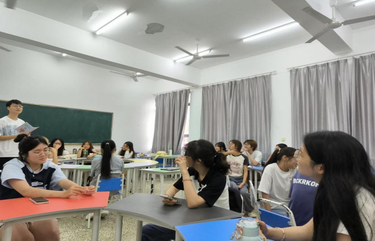卢艳萍以满腔热忱鼓励大家,要树立一个积极向上的学习态度,为即将展开的学习之旅铺设坚实的基石。而邓雪薇和吴静涛则携手为微专业的团体活动设计与实施课程注入了无限活力。他们匠心独运,策划了两场别开生面的活动。其中,“滚雪球”游戏要求学生们以“姓名加爱好”的创意形式自我介绍,并依次说出自己及前面同学的信息,如同一场智慧的接力赛。这一环节瞬间点燃了大家的热情,让彼此间的距离在欢声笑语中悄然拉近。而另一场活动,则以“假如我是一朵花/一个食物”为引子,引导学生们放飞想象的翅膀,分享自己内心深处的独特想法。课堂气氛因此变得活跃,邓老师更是将专业理论与课堂活动天衣无缝地融合,让学生们在轻松愉快的氛围中悄然汲取知识的甘露。