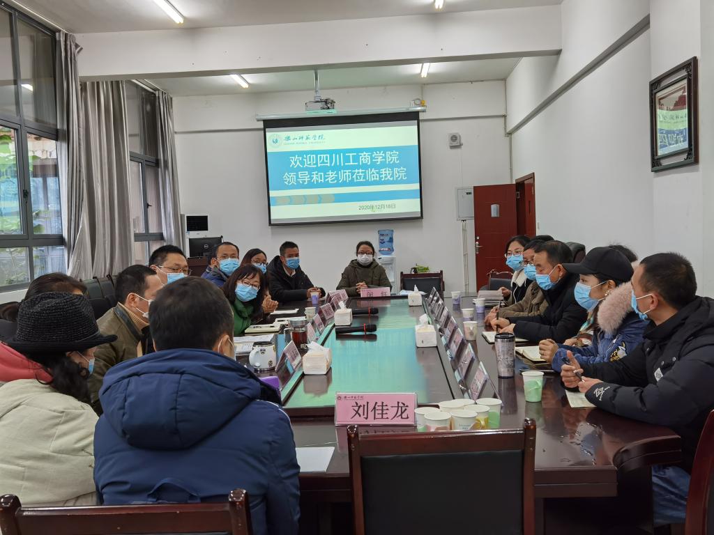 本网讯(图、文/袁英)12月18日上午四川工商学院教务处处长郑亚平、教育学院副院长杨志恒一行8人就本科评估方面的工作进行交流考察。教师教育学院院长汪红烨、副院长徐世鼎、相关教务、实验室科长以及教研室主任和老师在学院办公室与来宾进行了交流和座谈。