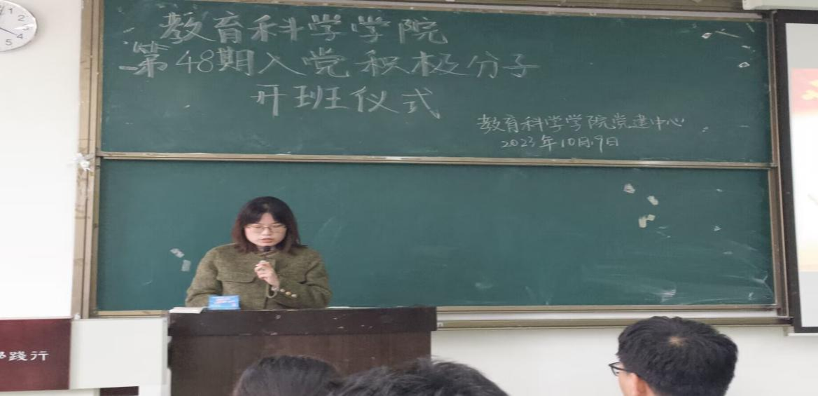 本网讯(文/盛曼、图/张媛)教育科学学院于10月19日下午,在行知楼101召开了第四十八期分党校入党积极分子培训开班典礼,党建辅导员杨蕾老师以及所有第四十八期入党积极分子参与了此次开班典礼。