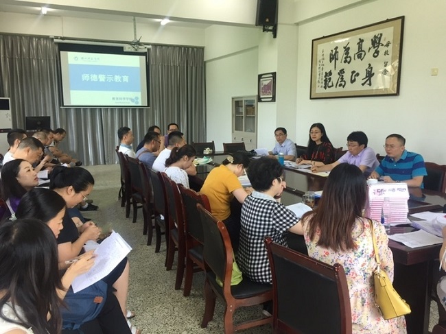 本网讯(文、图/袁英)为进一步加强我院师德师风建设,牢固树立教师廉洁从教意识,6月13日下午,教科学院召开全体教师工大会进行师德警示教育,会议由总支书记杨霞主持并作警示教育。