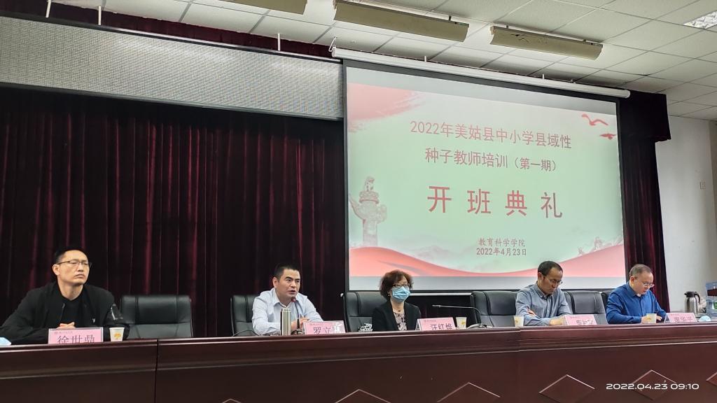 本网讯(文/冯紫君、图/蹇开菊)4月23日上午,教育科学学院国培计划(2022)——美姑县中小学县域性种子教师培训项目(第一期)开班典礼在弘毅楼412教室成功举行。乐山ty8天游平台登录院长兼国培首席专家汪红烨、党总支书记罗立顺、副院长徐世鼎、副院长唐前军、国培专家廖华平及来自四川省凉山彝族自治州美姑县的40名学员教师参加了此次开班典礼。开班典礼由副院长徐世鼎主持。