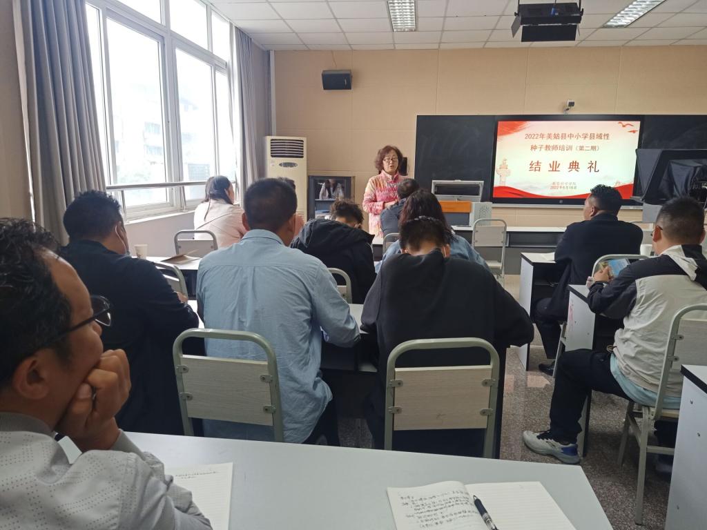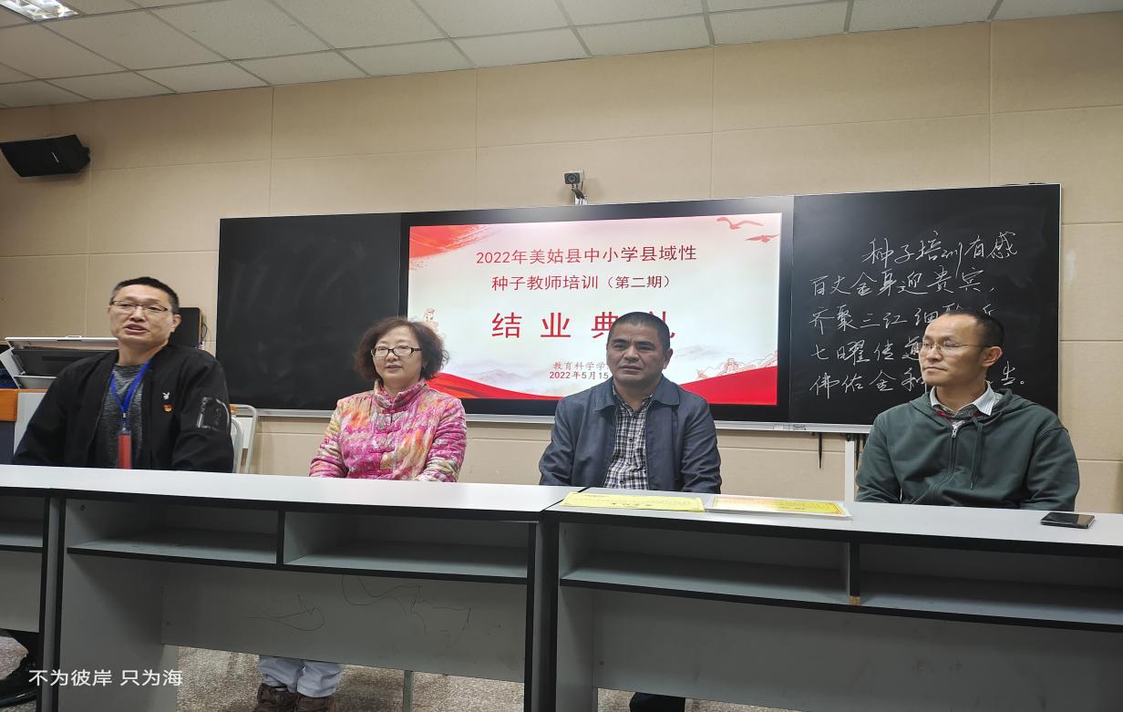 本网讯(文、图/黄宇、王佳鑫、邓琳、蒋显兰)5月15日上午,由教育科学学院具体承办的“2022年美姑县“一对一”精准帮扶--中小学县域性种子教师培训(第二期)”结业典礼在弘毅楼504A教室顺利举行,学院院长兼本次培训首席专家汪红烨、党委书记罗立顺、副院长徐世鼎、副院长唐前军和来自四川省凉山彝族自治州美姑县的36名学员参加了此次结业典礼。典礼由汪红烨主持。