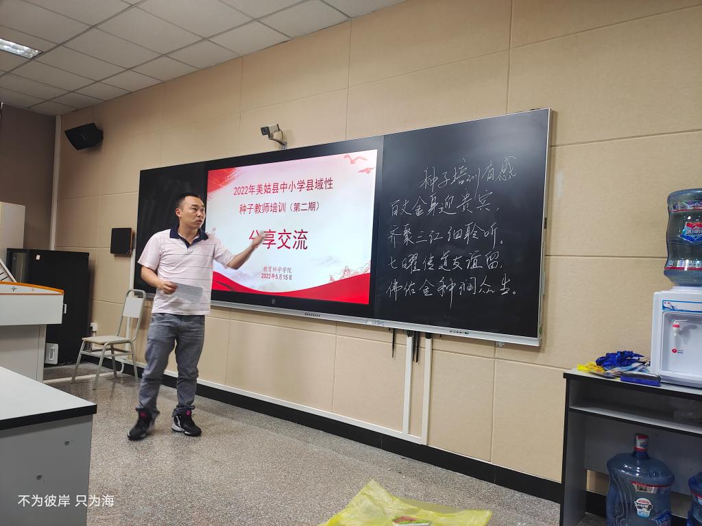 来自美姑县树窝小学的万宽老师对此次培训有感而发,写下了这一首唯美的诗,在交流分享会上,将这首诗分享给大家,也表达了对乐山师范学院美好的祝愿。