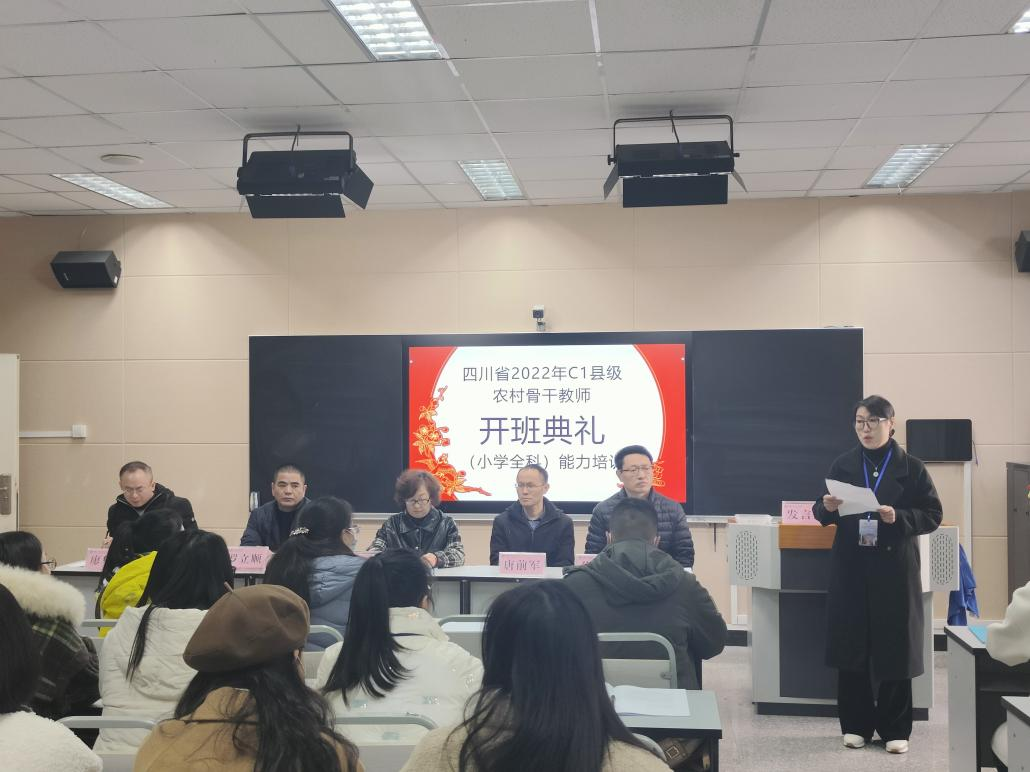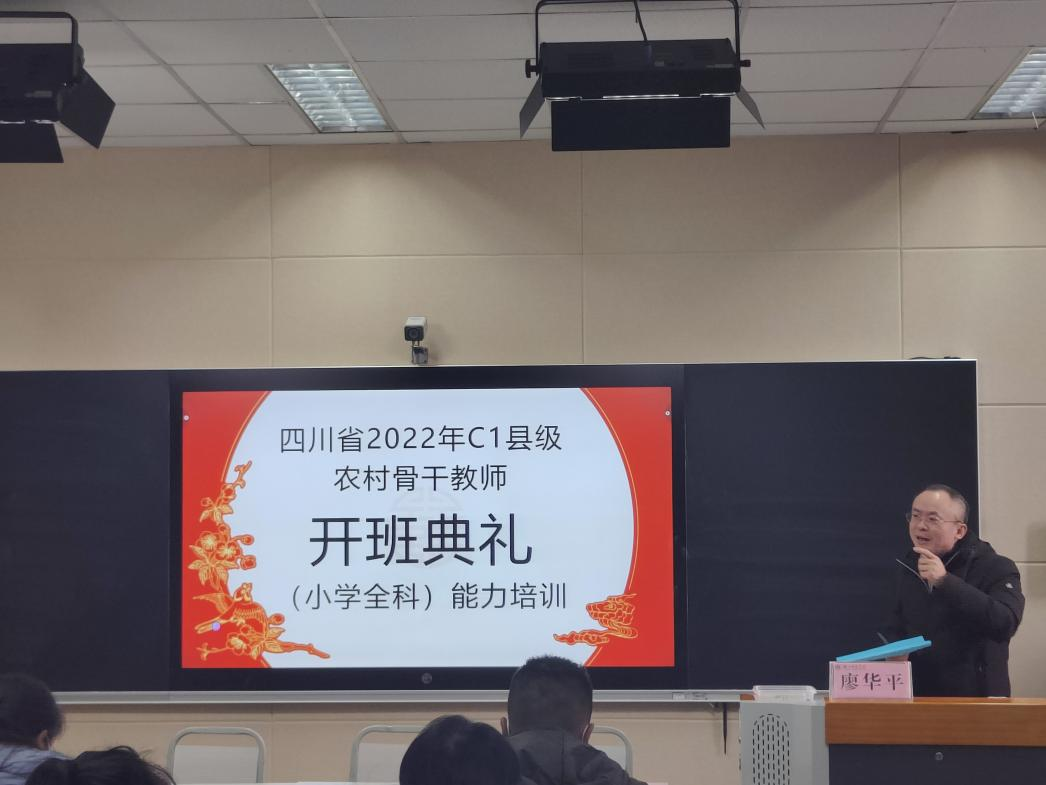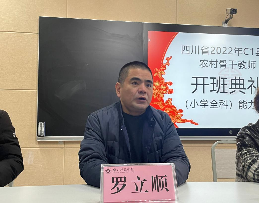 本网讯(文/罗清、图/张滢滢)12月5日上午,乐山ty8天游平台登录承办的四川省2022年乐山市“国培项目”—C1县级农村骨干教师(小学全科)能力提升培训开班典礼在弘毅楼504B教室举行。乐山ty8天游平台登录院长、国培首席专家汪红烨、党委书记罗立顺、副院长徐世鼎、唐前军、教育科学学院“国培计划”执行专家教学班主任廖华平、张晓玲、行政班主任杨蕾以及来自四川省乐山市农村小规模学校共40名小学全科骨干教师参加了此次开班。开班典礼由徐世鼎主持。