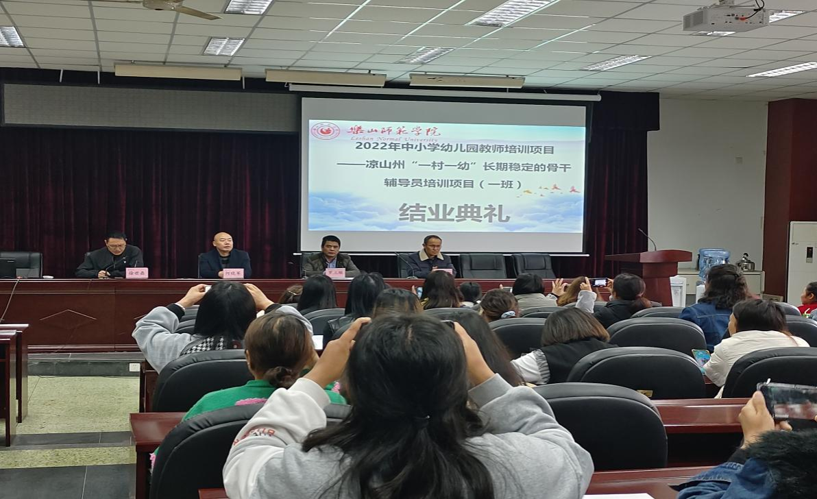 本网讯(文、图/罗佳)3月28日上午,由乐山ty8天游平台登录承办的“四川省2022年中小学幼儿园教师培训市(州)实施项目——凉山州“一村一幼”长期稳定的骨干辅导员培训项目(1班)圆满结束并顺利举行结业典礼。乐山ty8天游平台登录党委书记罗立顺、党委副书记兼纪委书记何晓军、副院长唐前军出席结业典礼。结业典礼由副院长徐世鼎主持。