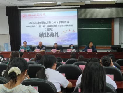 本网讯(图、文/邓琳)5月15日上午,由乐山ty8天游平台登录承办的四川省2022年中小学幼儿园教师培训市(州)实施项目——凉山州“一村一幼”长期稳定的骨干辅导员培训项目(四班)圆满结束并顺利举行结业典礼。乐山ty8天游平台登录院长、国培项目首席专家汪红烨、党委书记罗立顺、党委副书记兼纪委书记何晓军、副院长徐世鼎、唐前军、学前教育系主任余祥、副主任李非易、生活班主任帅希权和来自凉山州的48名骨干辅导员参加了结业典礼。结业典礼由副院长徐世鼎主持。在结业典礼上,徐世鼎副院长向学员们介绍了本次参加结业典礼的领导、老师以及志愿者们,首先请优秀学员邱慧、刘甜甜、姜巫甲进行发言,学员对学院的领导、老师表示了感谢。他们纷纷表示在专家讲座、跟岗研修以及小组研讨活动中,受益良多,收获满满。并表示将会把学习到的知识运用到教学当中去,学员们表示感受到国家对于凉山州教育的重视。随后唐前军副院长宣布本次国培的优秀学员名单,并对各位优秀学员表示祝贺。最后,罗立顺书记讲话,他充分肯定了本次培训的成效,他指出:各位学员都是凉山州教育发展的重要一员,并祝愿各位学员在今后的幼儿教育工作中做一位幸福的幼儿教师。