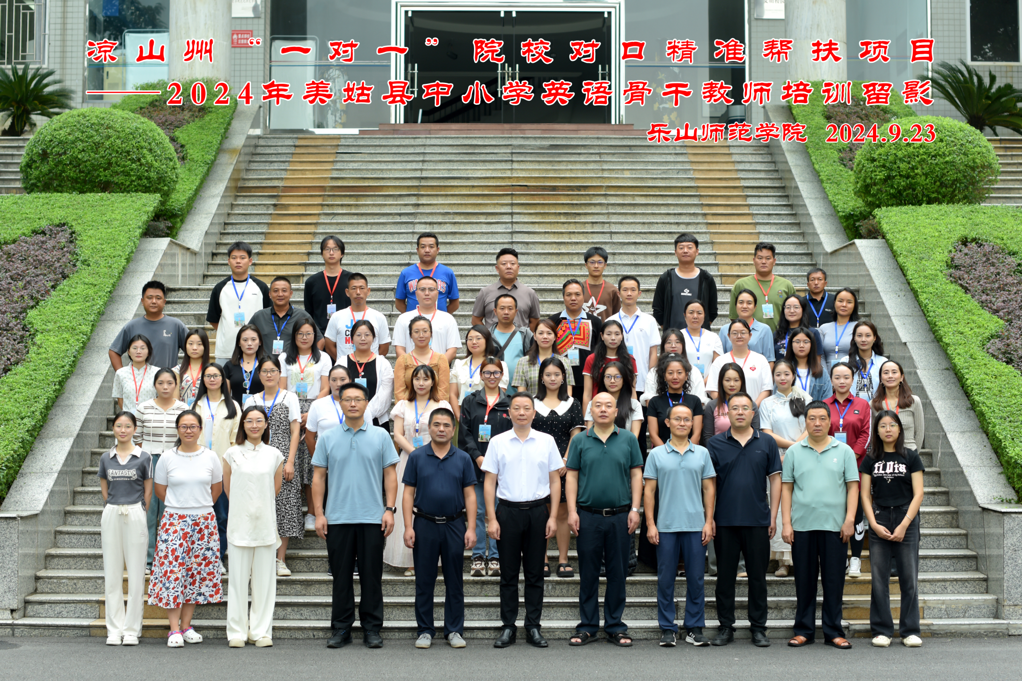 本网讯(文/陈甜 图/董家雪)9月23日,由乐山ty8天游平台登录承办的2023年凉山州“一对一”院校对口精准帮扶项目——美姑县中小学英语骨干教师培训”开班典礼在弘毅楼312教室顺利举行。学校党委常委、组织部部长、教育科学学院院长佘万斌,教育科学学院党委书记罗立顺,党委副书记、纪委书记何晓军,副院长唐前军、马艺丹,教师教育教研室主任张广云,实验室办公室主任赵增华以及来自美姑县的46名学员参加了此次开班典礼。开班典礼由副院长徐世鼎主持。