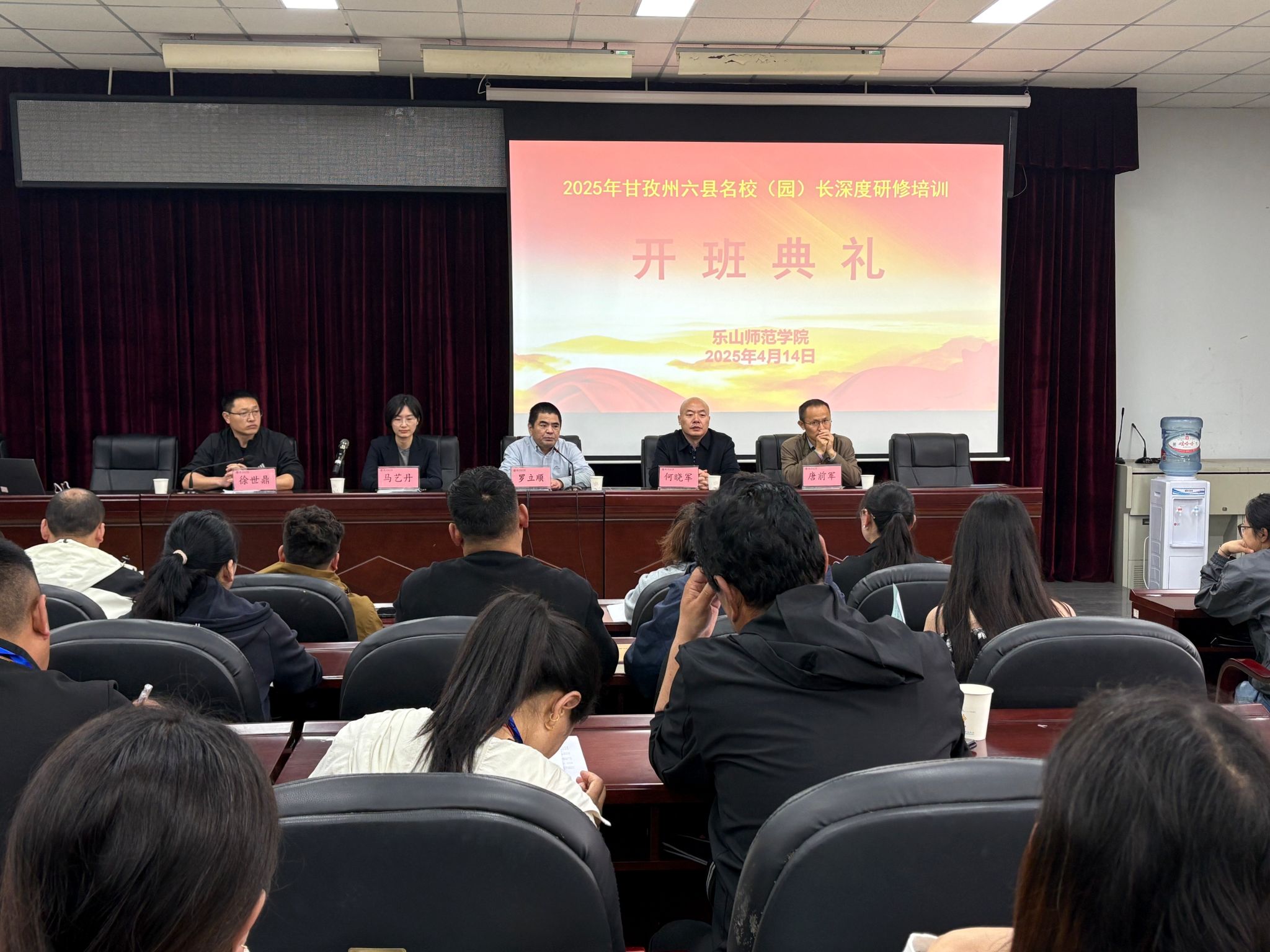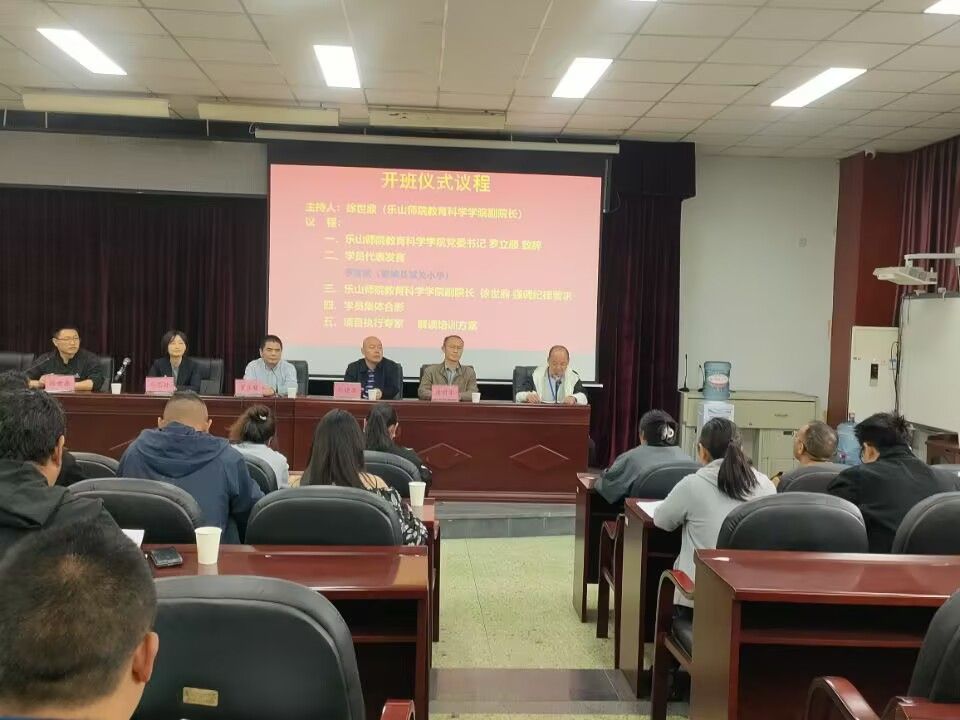 本网讯(文、图/杨斯淇、李飞宇)4月14日上午,由乐山ty8天游平台登录承办的2025年国家及省级教师培训(甘孜州统筹项目)--县级名校(园)长深度研修培训开班仪式在弘毅楼412教室顺利举行。乐山ty8天游平台登录党委书记罗立顺,党委副书记、 纪委书记何晓军,副院长唐前军、马艺丹,小学教育专业专任教师刘猛、教学与科研管理办公室教务干事钟小婷,党政办公室行政秘书陈佳以及来自甘孜州的36名学员参加了此次开班仪式;开班仪式由副院长徐世鼎主持。