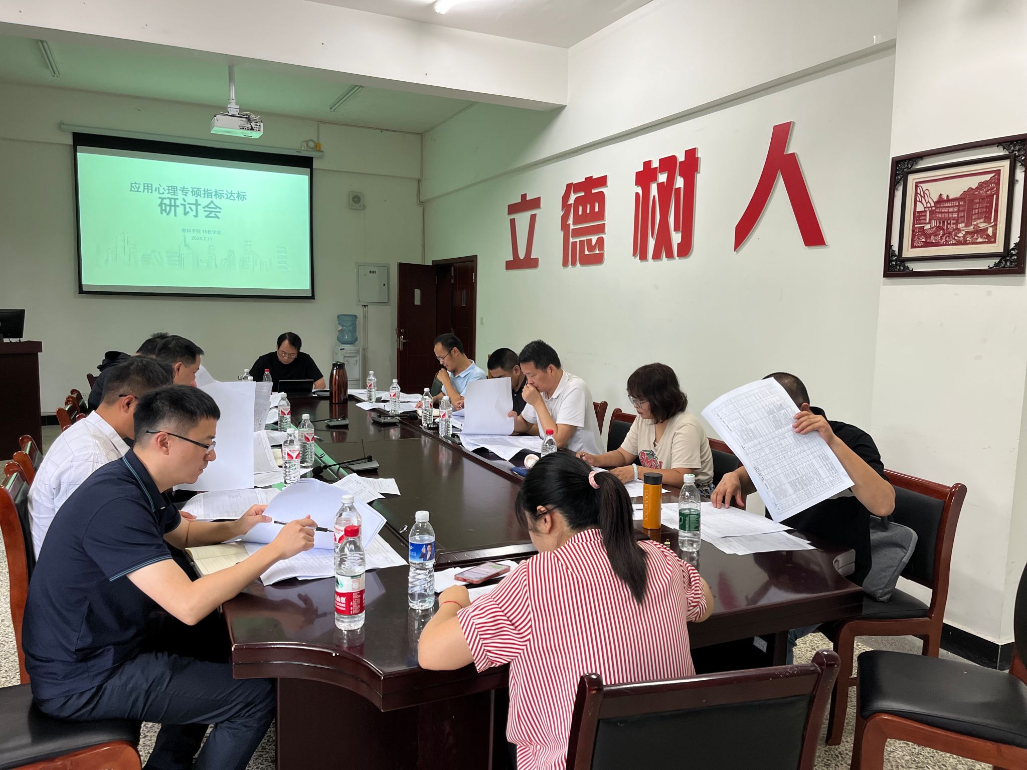 本网讯(文、图\吴永胜)2024年7月11日,一场旨在推动我校教育学科硕士学位授权点扩点建设的重要会议在特教B栋会议室召开。此次会议由教育科学学院与特殊教育学院联合召开,主题为“申硕扩点专项研讨”,旨在针对专业学位类别和学术学位类别的硕士学位授权点基本条件对标建设进行深入探讨,为我校教育学科未来的发展定方向、找差距、寻办法。