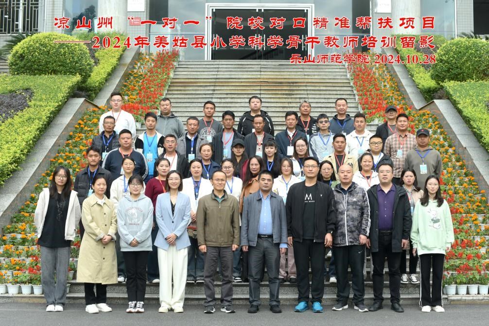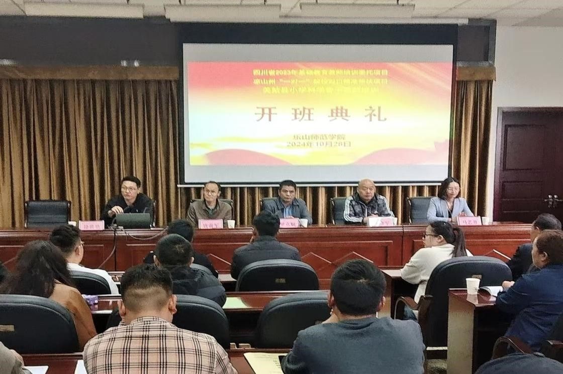 本网讯(文、图/陈甜)10月28日,由乐山ty8天游平台登录承办的2023年凉山州“一对一”院校对口精准帮扶项目-美姑县小学科学骨干教师培训”开班典礼在弘毅楼312 教室顺利举行。乐山ty8天游平台登录党委书记罗立顺,党委副书记、 纪委书记何晓军,副院长唐前军、马艺丹,教师教育教研室主任张广云,实验室办公室老师钟小婷,辅导员杨蕾以及来自美姑县的39名学员参加了此次开班典礼。开班典礼由副院长徐世鼎主持。