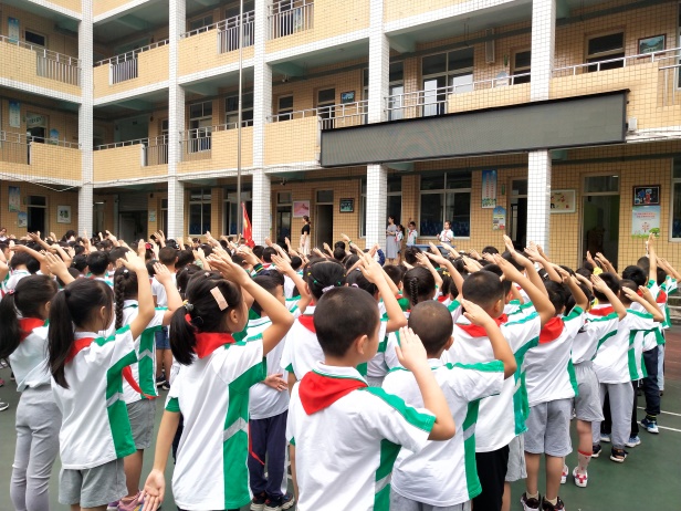本网讯(文、图/王敏)在实习的第二周,实习小组共同参与了县街小学的升旗仪式。一年之计在于春,一日之计在于晨,县街小学也从升旗仪式中迎来新的一周。升旗仪式流程为:出旗,升国旗,奏唱国歌,国旗下演讲,然后由老师进行上周工作总结以及接下来一周的工作安排。孩子们站在国旗下整齐的敬着少先队礼,稚嫩的歌声飘扬在操场的上空。