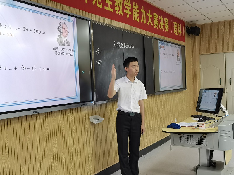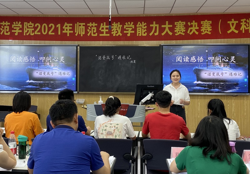 本次比赛分为文科和理科两个组别,分别设置即席演讲、说课、模拟授课和现场答辩四个环节。参赛选手根据出场顺序,现场抽取即席演讲题目(二选一)、说课和模拟授课的题目(三选一),准备5分钟即席演讲内容后,按照比赛环节,逐一进行现场展示。每位选手即席演讲3分钟,说课3分钟,模拟授课10分钟,答辩2分钟。评委根据选手的即席演讲、说课、教学设计、讲课、课件制作、板书设计与书写、现场答辩等方面的表现,综合评比,现场打分。主持人现场公布每位选手的最终得分。经过激烈地角逐、公平地竞争,教师教育学院胡叶、文新学院肖尧获得文科组一等奖,教师教育学院赵茂婷、数理学院王炳霖获得理科组一等奖。