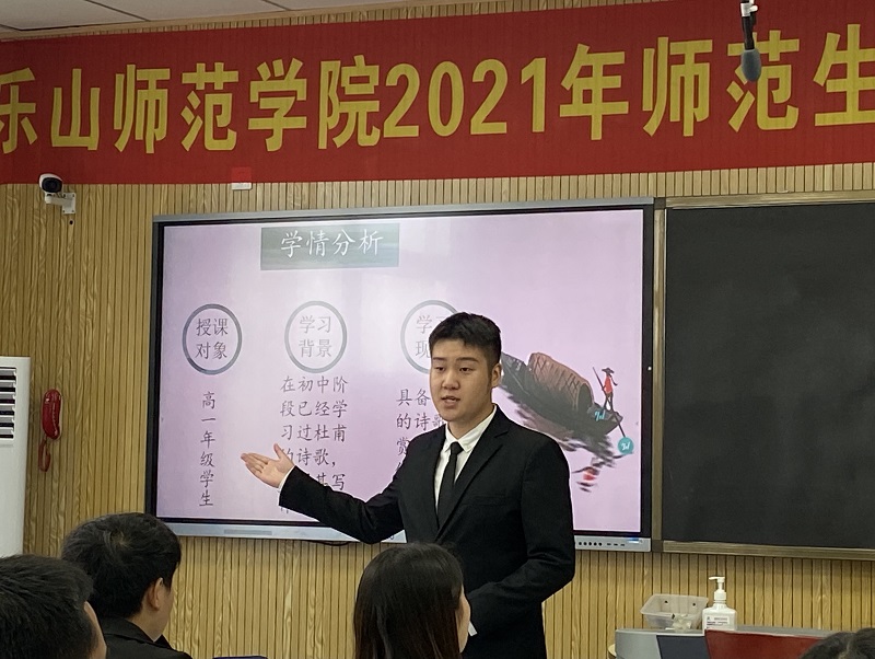 本网讯(文/杨小丽、图/罗业佳、郑佳欣)6月26日,乐山师范学院2021年师范生教学能力大赛决赛在行知楼513和515教室隆重举行。全校12个教学院17个专业33位选手参加了比赛。乐山市第一中学、乐山外国语学校、四川博睿特外国语学校、乐山市第一职业中学、乐山市特殊教育学校、乐山市中区学生发展中心、乐山师范学院附属小学、乐山市机关幼儿园等基础教育学校(机构)的16位优秀教师及我校学科教学法的2位资深教授担任了本次决赛的评委。