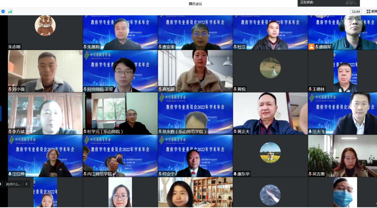 本网讯(文、图/朱志刚、刘玉凤、巴玉宁)11月5日,四川省教育学会教育学专业委员会2022年学术年会“深化新时代教育评价改革与基础教育高质量发展”在“云端”隆重召开。本次年会由四川省教育学会教育学专业委员会主办,乐山师范学院、四川乡村教育发展研究中心、“农村教育的历史发展与当代改革研究”四川省社会科学高水平研究团队承办。四川省教育学会教育学专委会理事长、副理事长、常务理事、理事、部分教育学会会员,省内高校、研究机构的教师和研究生代表,部分地市州教育局、教科所、中小学、幼儿园的领导和教师以及乐山师范学院师生260余人参加了线上会议。